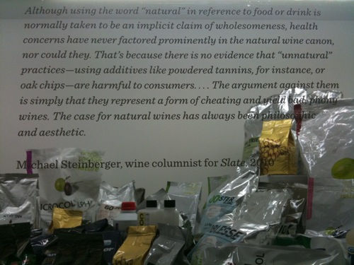 The most relevant section for me, in the context of my documentary about natural wine, was the collection of maybe 50 different products commonly added to wine: different types of color, synthetic tannins, nutrients, phenols, etc. Lots of stuff!